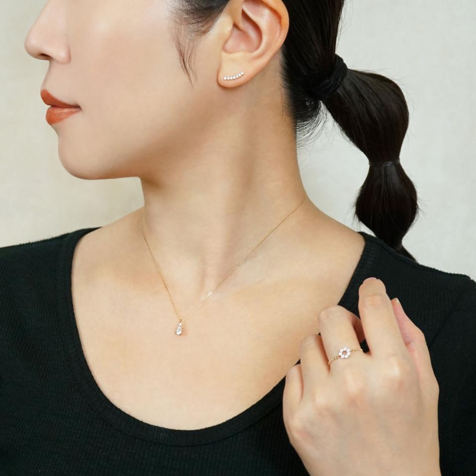 耳たぶに沿う輝きのラインが美しくシンプルな中に華やかさを演出するデザインです。