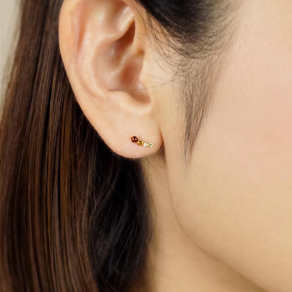 K10イエローゴールド(ポスト、キャッチ部分のみK18イエローゴールド)、ガーネット、シトリン、ハニークォーツ、ペリドット、ブルートパーズ、アメジスト