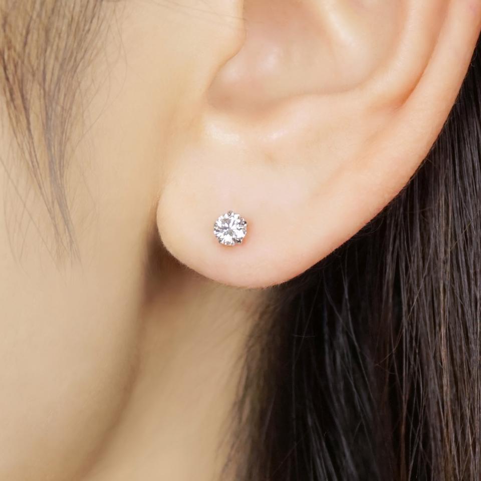4ミリのモアサナイトをオリジナルの5本爪の石枠に留めました。ホワイトの美しい輝きがお顔周りを明るくします。