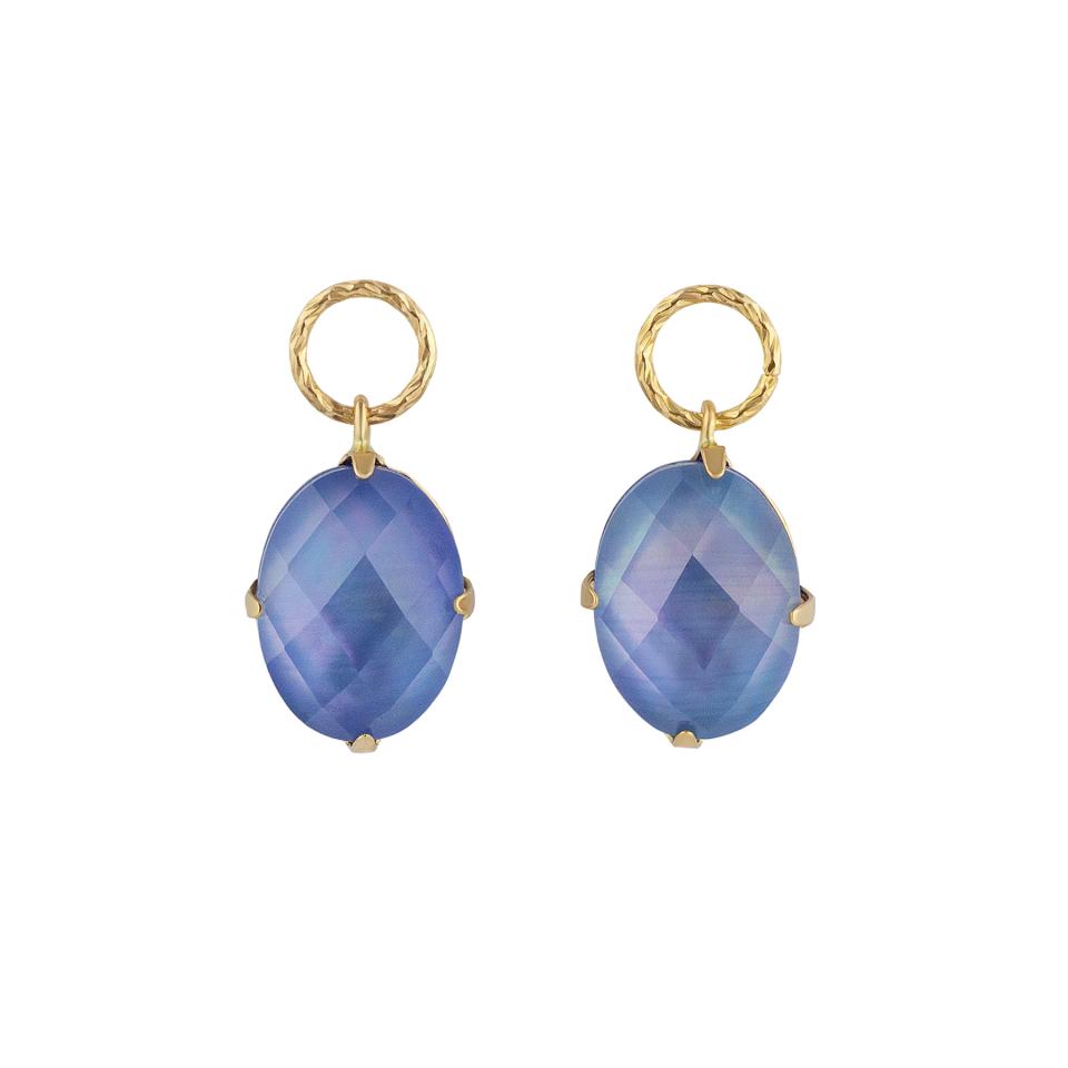 ラピスラズリ(12月誕生石)、ホワイトシェル、ホワイトクォーツの3石を貼り合わせたトリプレットストーンを使用しました。奥行きのある輝きとニュアンスのあるカラーはトリプレットだからこそ実現できる表情です。