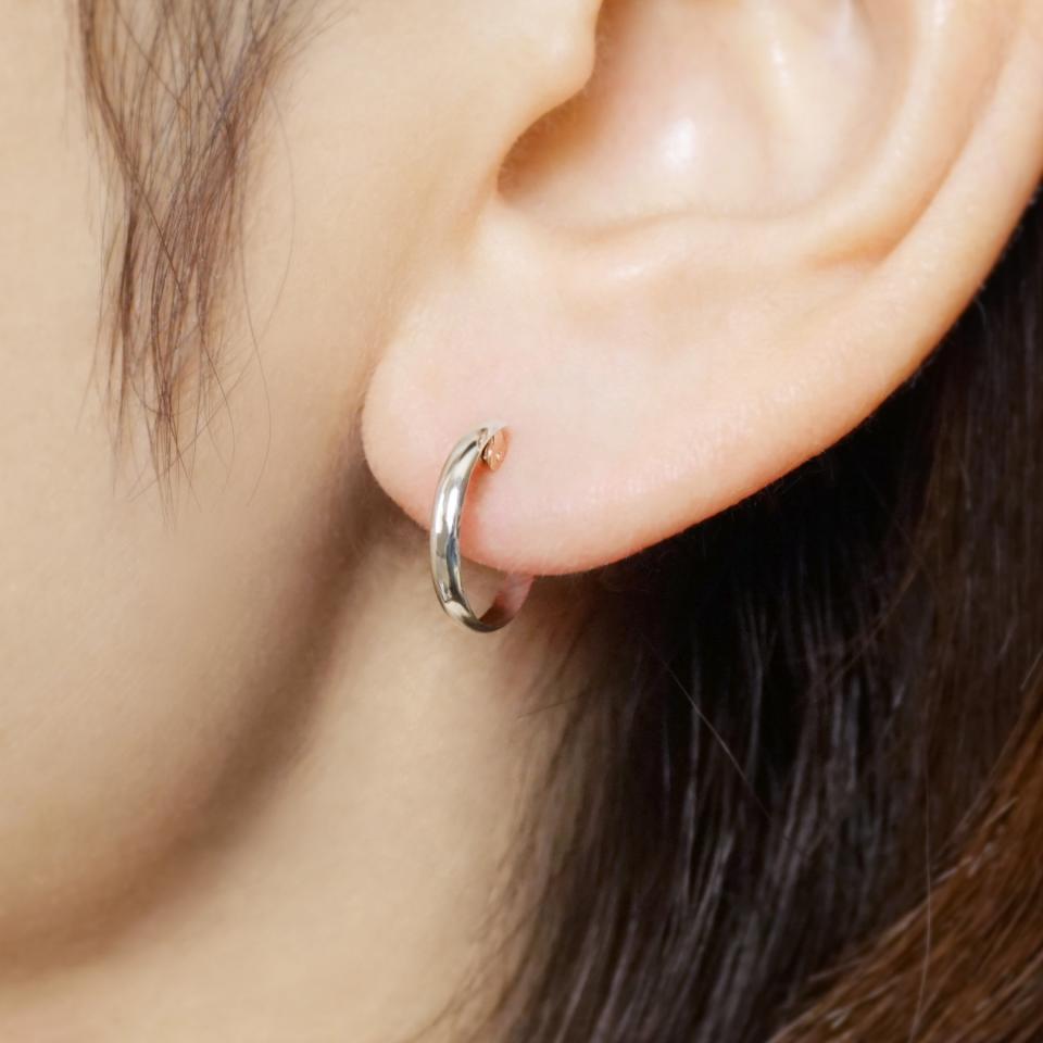 2ミリ幅の甲丸線を使った、素肌に溶け込む自然な輝きが魅力のシルバーピアス。
