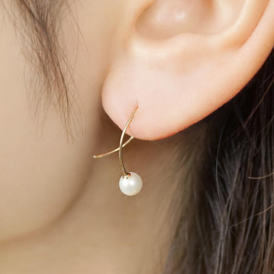 ゴールドワイヤーがクロスするような縦型のフォルムは、顔周りをすっきり見せてくれます。