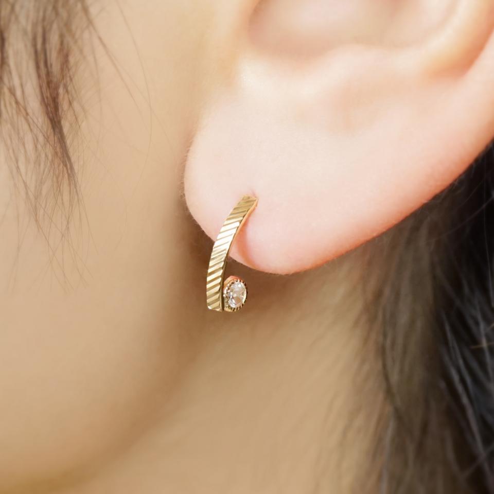 ナナメのカットを施したピアスベース。