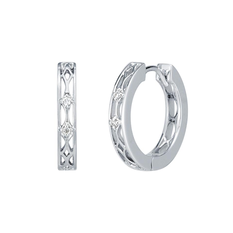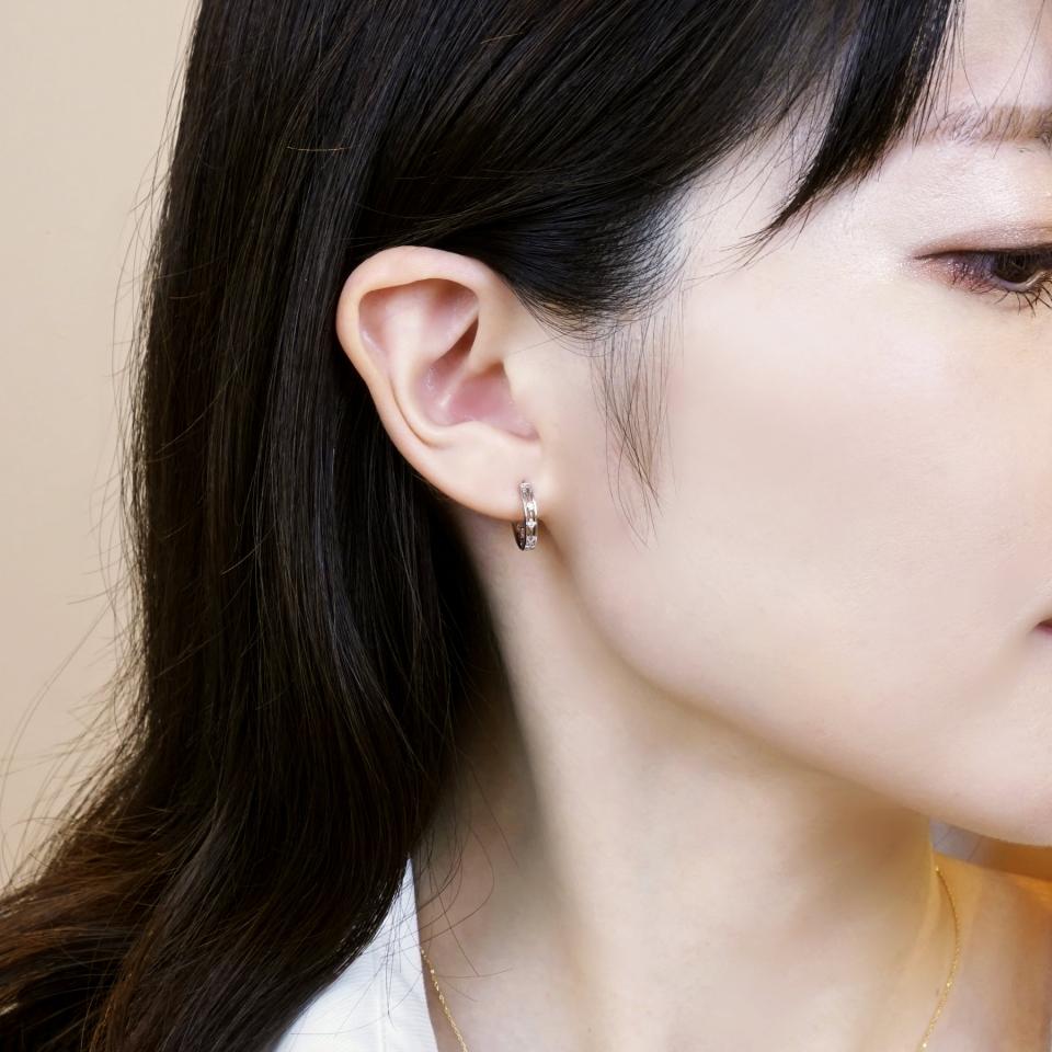 ひし形の透かし模様が施されたシャープなピアス。少し細めのラインですっきりと見えます。後ろまで模様が入っていてどこから見ても美しいデザインとフォルムに仕上がっています。